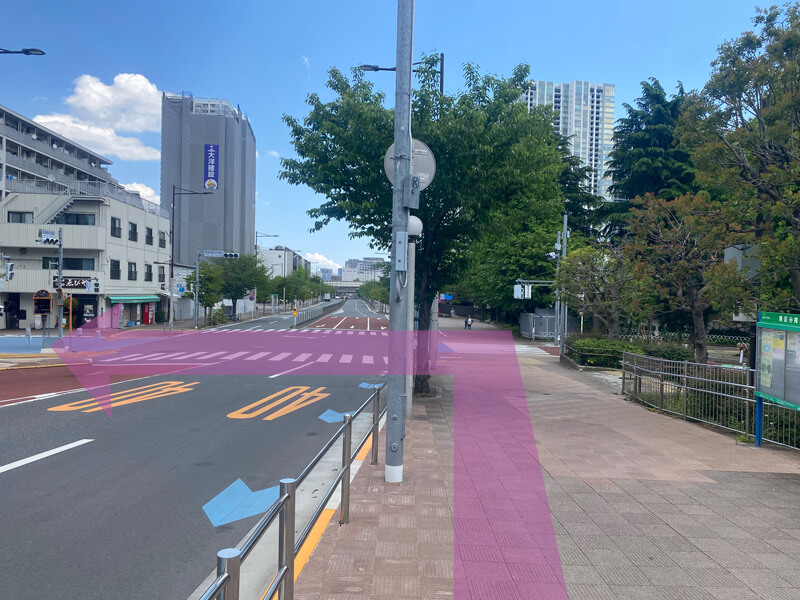 *徒歩の場合*(港南口より徒歩8分/改札からは約12~3分)