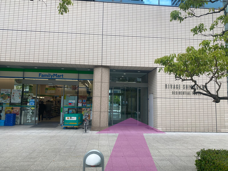 (5)来た道を少し戻るように進み、信号から右斜め前に見える、ファミリーマートが入っているマンションです。こちらの15階(1504号室)がアリストレンディです。オートロックでお呼び出しください。