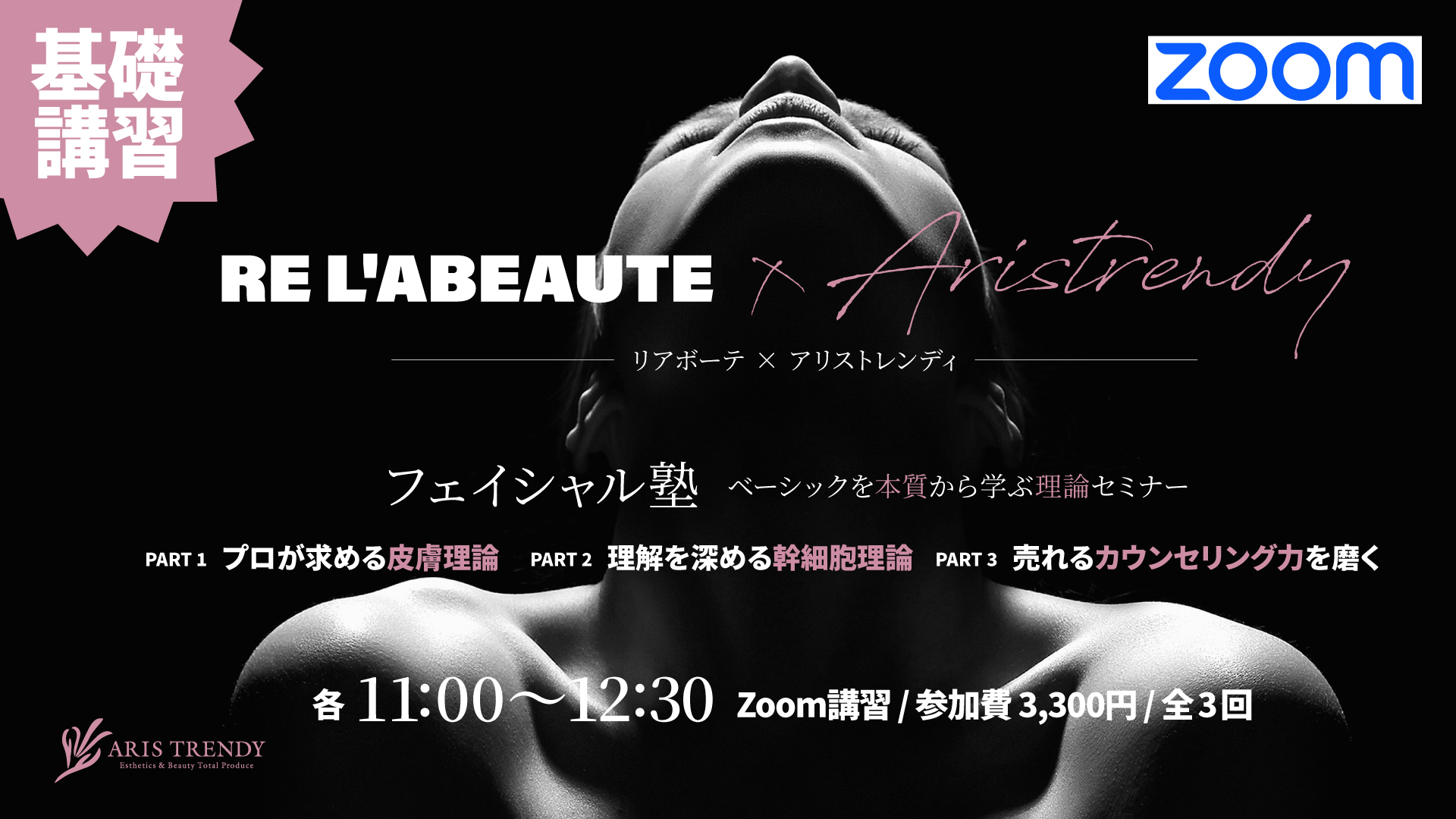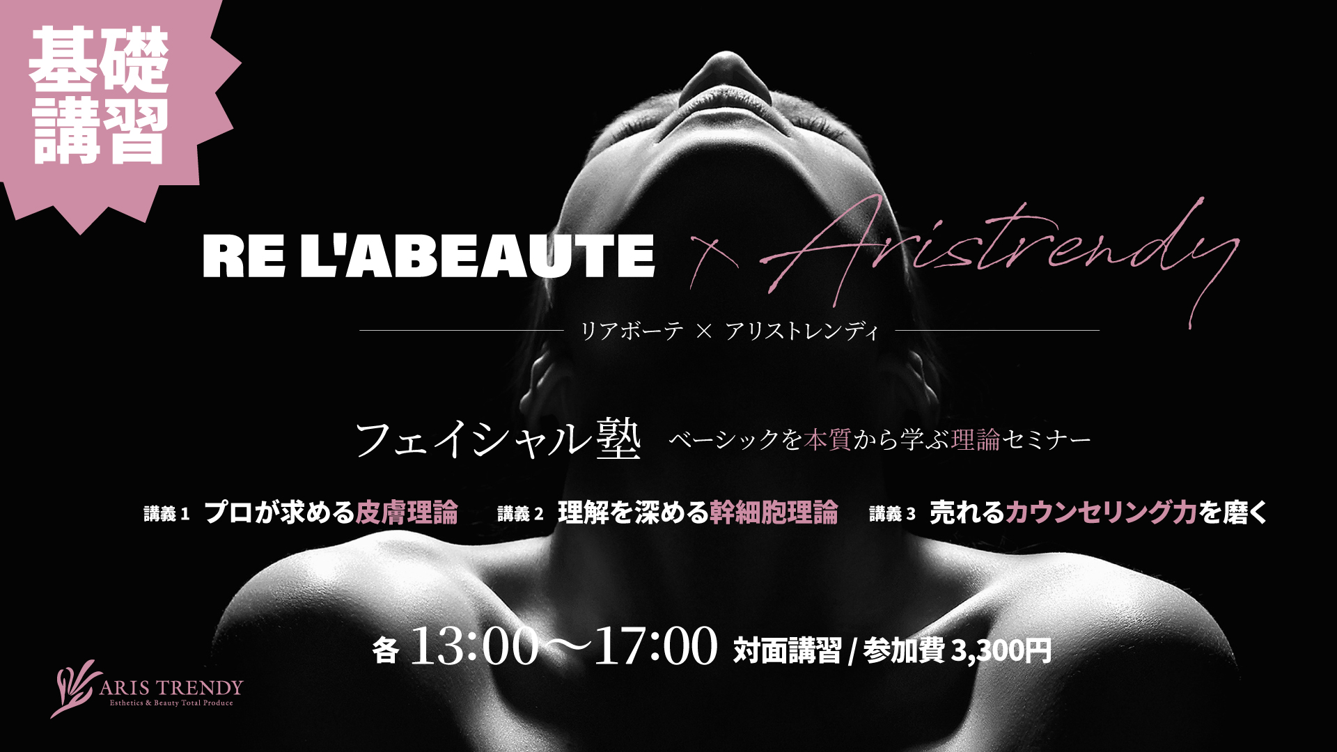 「リアボーテ×アリストレンディ フェイシャル塾〈ベーシックを本質から学ぶ理論セミナー〉(対面/ZOOM)」